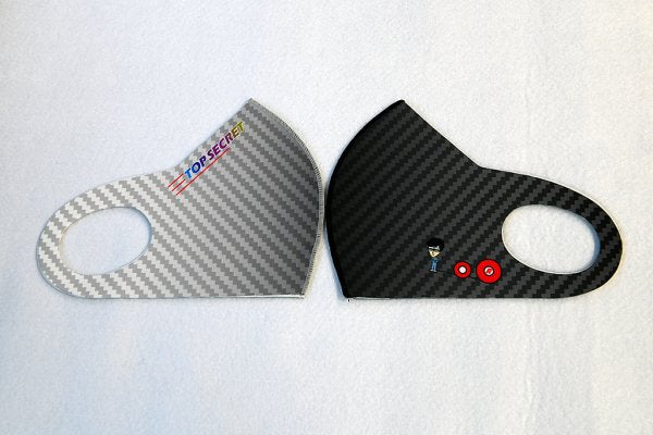 Product Description | A new version of the mask with the TOP SECRET logo has been released. It features a white and black carbon pattern with the TOP SECRET logo, and this time Smokey Nagata and GT-R tail lights. Remarks One size fits all |