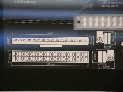 | Product Description | Uses 30 high-brightness LEDs. A daytime running light with a total of 6.9 watts of small LEDs that shine in large quantities. Tilt angle of 2 degrees, fits the bumper. Dimensions: H30 x W190 x D42 (mm) ■New left and right set ■High-brightness LEDs ■ Bracket and wiring included ■LED White color |