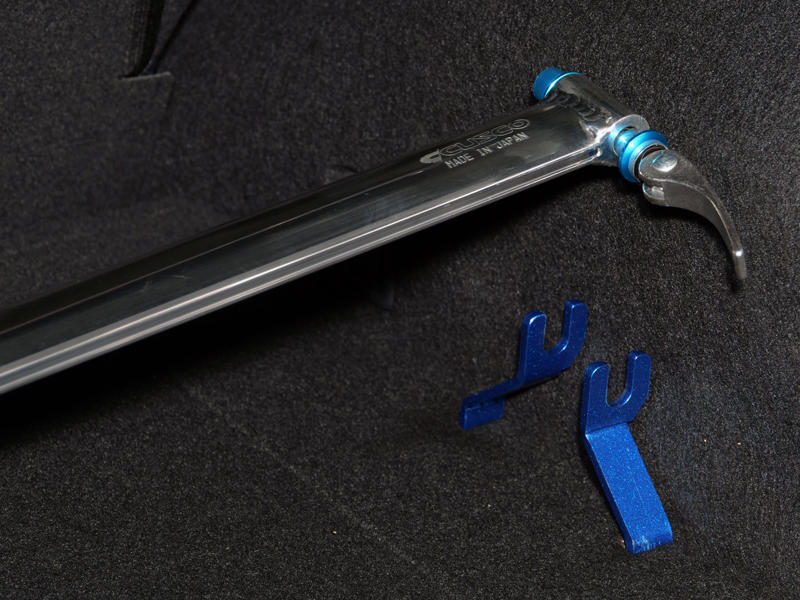 | Product Description | Cusco classic body reinforcement parts. Effectively suppresses body distortion. ● Uses a highly rigid shaft made of lightweight aluminum with an oval cross section. The mounting bracket is made of steel with a Cusco blue finish. Bolt-on installation is possible. Type OS Click Release Type/Shaft Type 1 *Quick release type: The shaft can be easily attached and detached without tools, such as when loading luggage. Bolt-on installation is possible. When installing covers on both sides of the floor, it is necessary to cut the bracket interference part. |