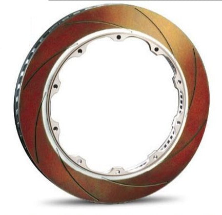 "BRAKE ROTOR Racing" is a racing spec brake rotor that has been researched and developed and is used in the actual races such as Super GT, which is the top category in Japan. A two-piece type with the rotor and bell housing separated is adopted, and special carbon is uniformly blended in the rotor material using our unique technology. As a result, a stable friction coefficient was obtained with less cracking, and we succeeded in fully drawing out the performance of the brake pads. In addition, duralumin, which is resistant to heat and has high strength, is used for the bell housing. While contributing to stable braking force, it also reduces unsprung weight.