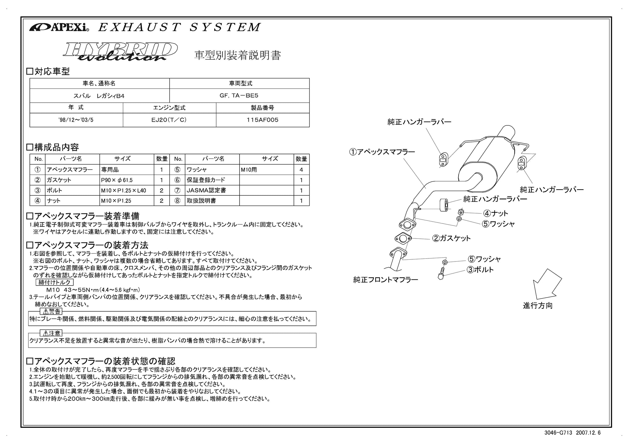 | Product Description | Model Year: 98/12-03/06 Main Pipe Diameter: Ï_65 ___ Ï_80 No of Pieces: 1 Tail Diameter: Ï_115 Oval Exhaust System Type: Rear piece only Sound Level: 86 Ground Cleance :136 |