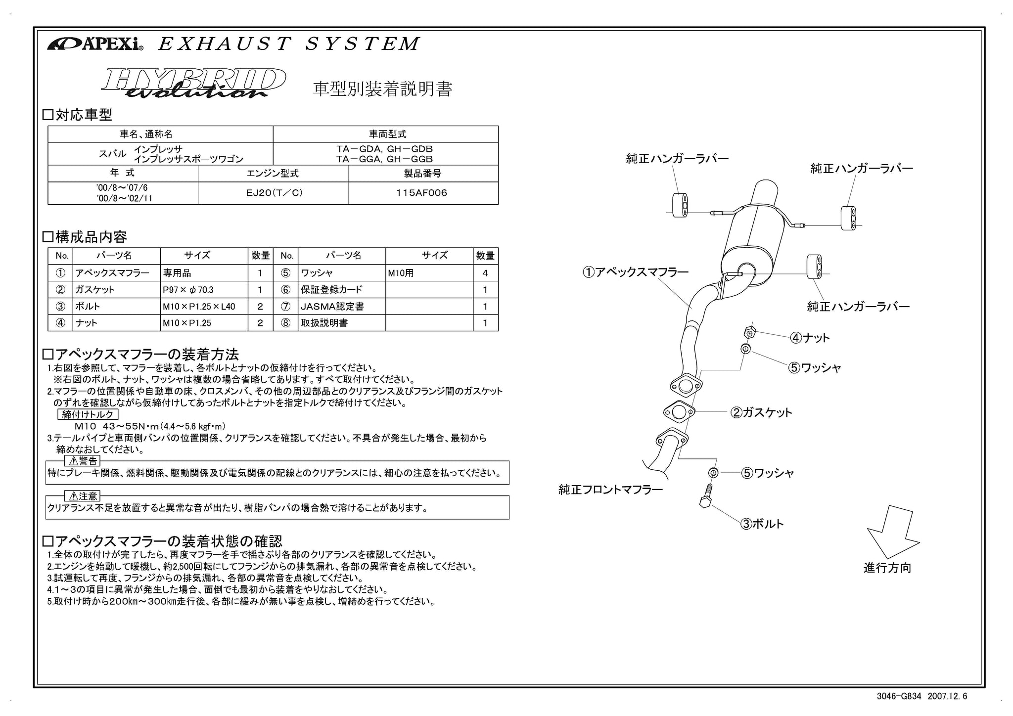 | Product Description | Model Year: 00/10-07/06 Main Pipe Diameter: Ï_65 ___ Ï_80 No of Pieces: 1 Tail Diameter: Ï_115 Oval Exhaust System Type: Rear piece only Sound Level: 92 Ground Cleance :136 |