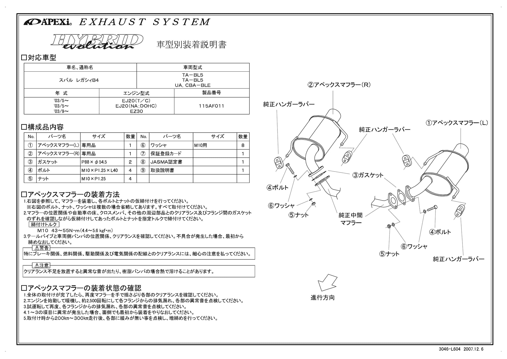 | Product Description | Model Year: 03/09-06/06 Main Pipe Diameter: Ï_60 Ã_ 2 No of Pieces: 2 Tail Diameter: Ï_115 Oval Ã_ 2 Exhaust System Type: Rear piece only Sound Level: Left 81 right 83 Ground Cleance :131 |