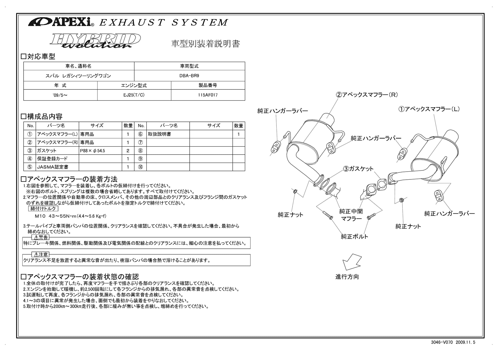 | Product Description | Model Year: 09/05-10/03 Main Pipe Diameter: Ï_60 Ã_ 2 No of Pieces: 2 Tail Diameter: Ï_115 Oval Ã_ 2 Exhaust System Type: Rear piece only Sound Level: Left 86 right 85 Ground Cleance :143 |