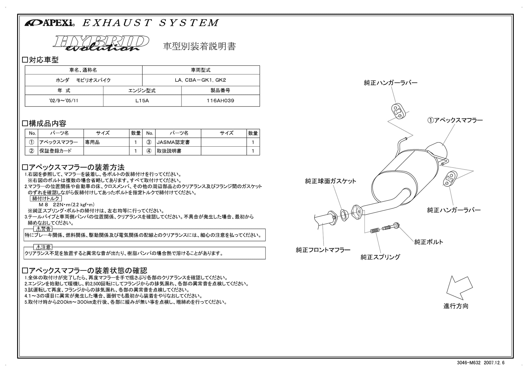 | Product Description | Model Year: 02/09-05/11 Main Pipe Diameter: Ï_50 No of Pieces: 1 Tail Diameter: Ï_105 Oval Exhaust System Type: Rear piece only Sound Level: 90 Ground Cleance :153 |
