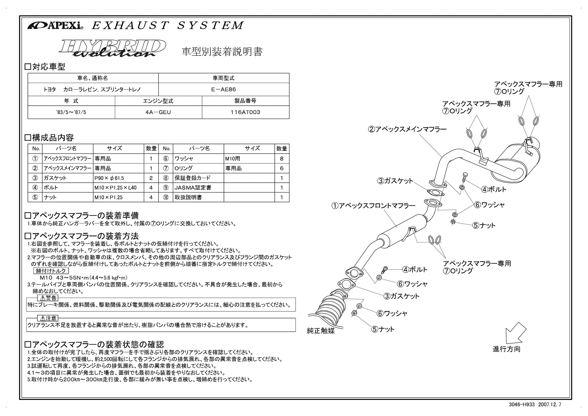 APEXI HYBRID MEGAPHONE Evolution Exhaust For TOYOTA Corolla Levin Sprinter Trueno AE86 116AT003
