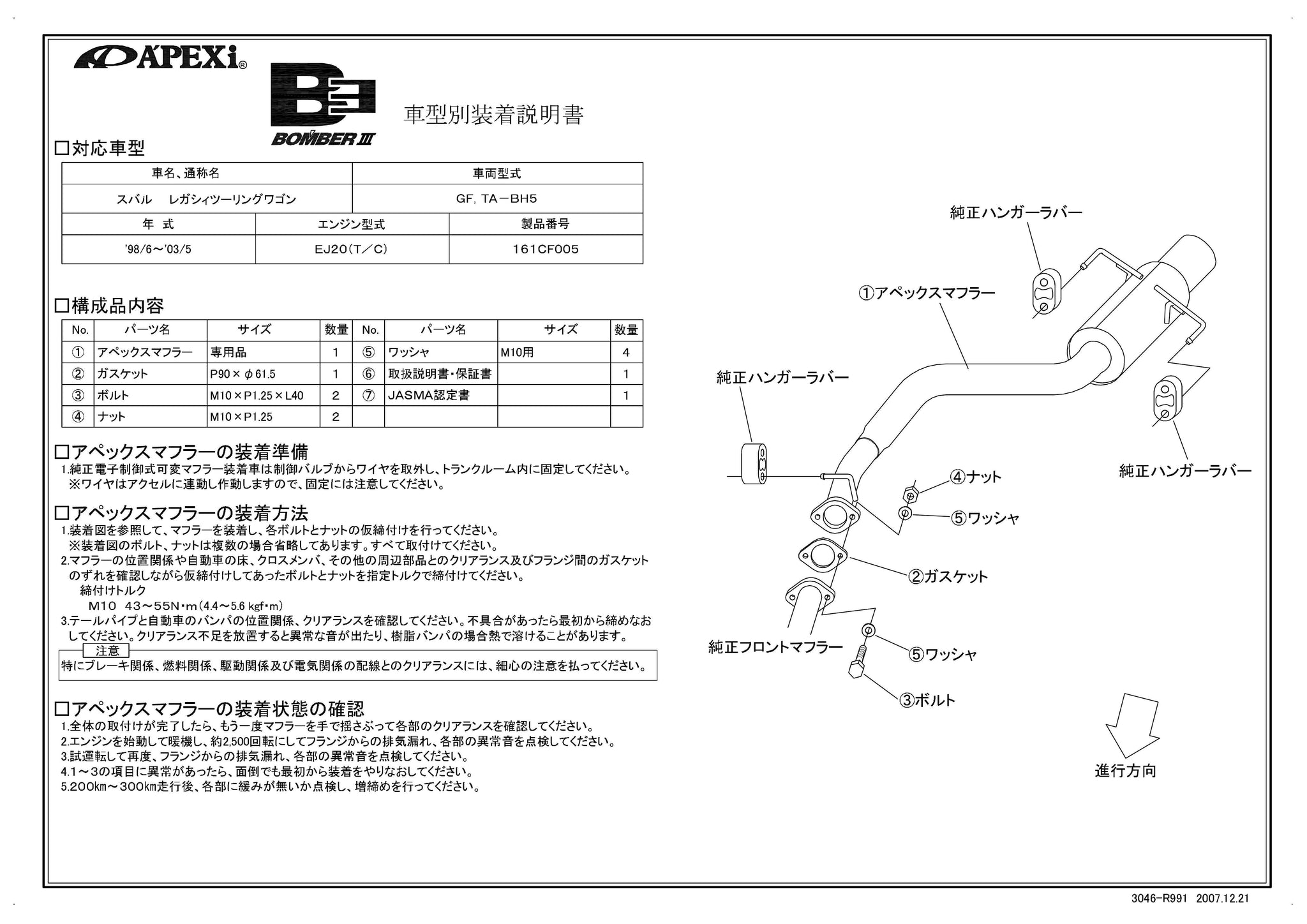 APEXI BOMBER 3 Exhaust For MAZDA Legacy Touring Wagon BH5 161CF005