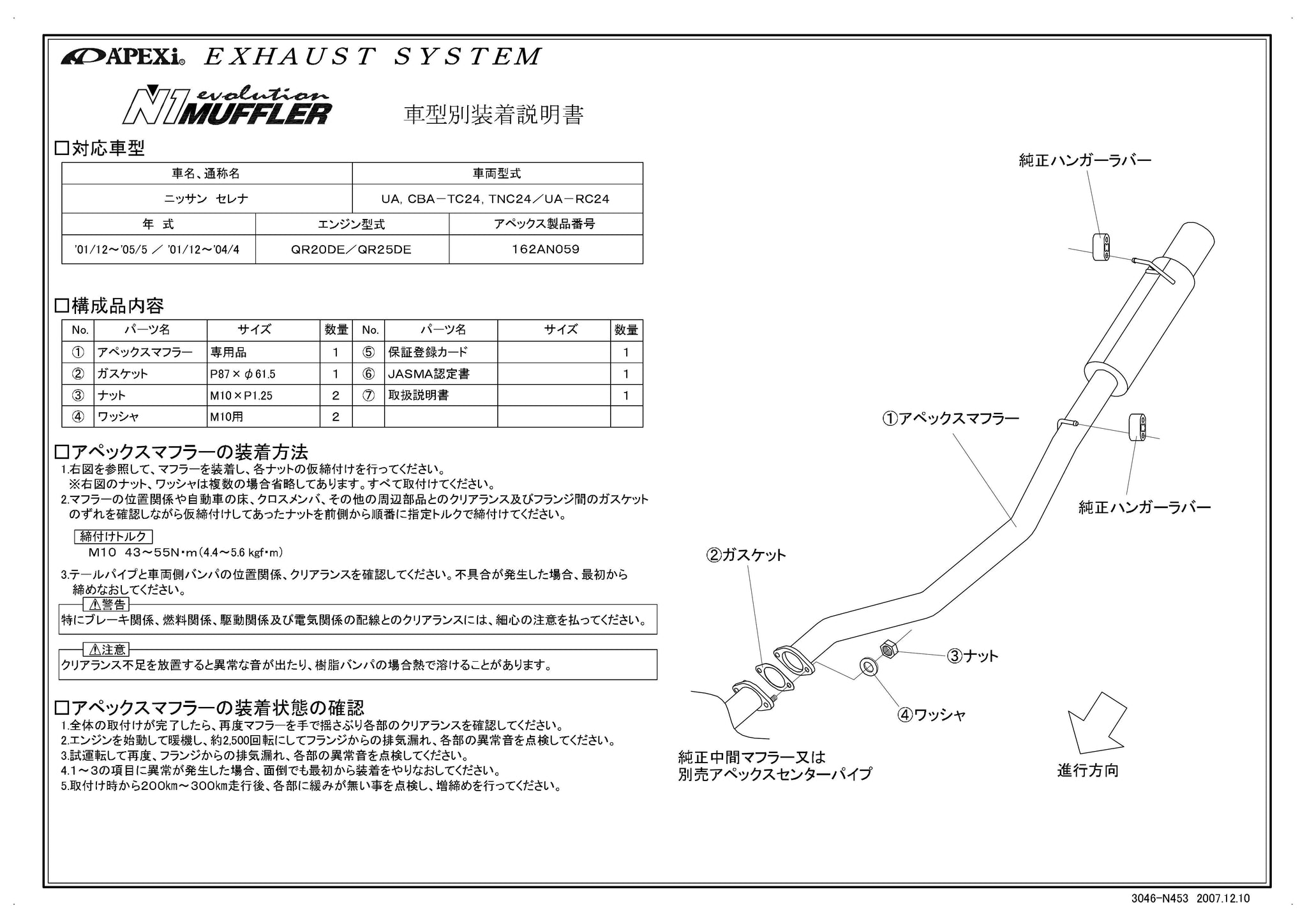 | Product Description | Model Year: 01/12-05/05 Main Pipe Diameter: Ï_60 No of Pieces: 1 Tail Diameter: Ï_120 / Ï_90 Exhaust System Type: Rear piece only Sound Level: 86 Ground Cleance :149 |