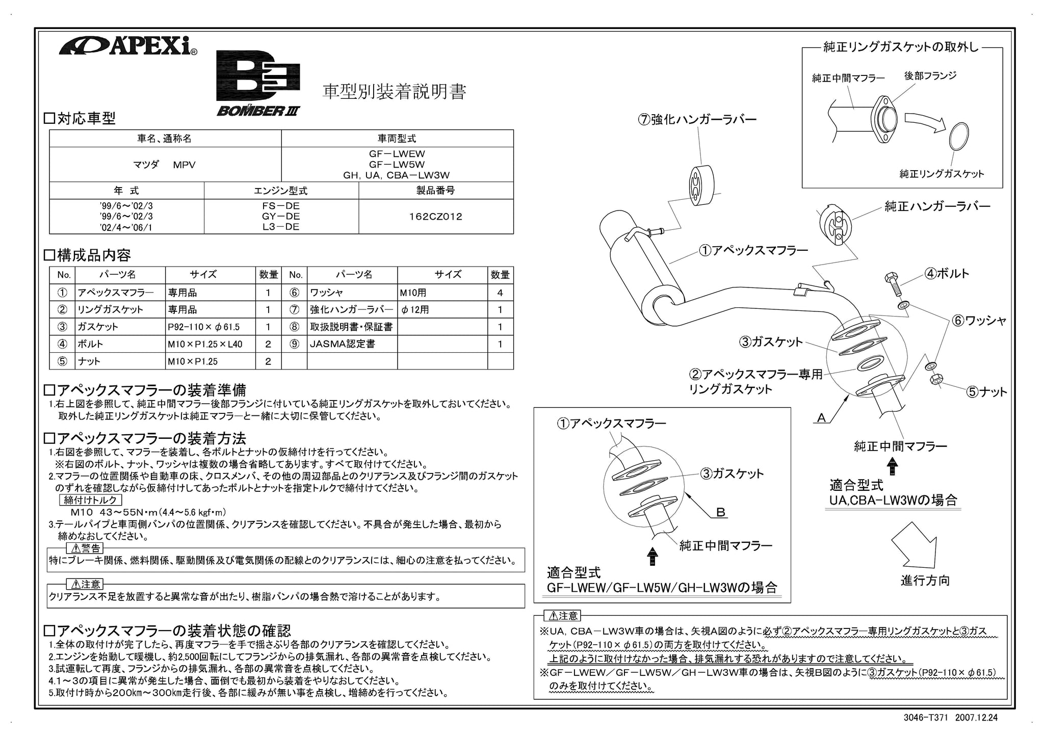 | Product Description | Model Year: 99/06-02/04 Main Pipe Diameter: Ï_54 No of Pieces: 1 Tail Diameter: Ï_120 / Ï_90 Exhaust System Type: Rear piece only Sound Level: 82 Ground Cleance :160 |