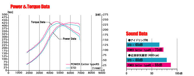 Stock: 223kw (303.3ps) / 5540rpm -> Fujitsubo: 230.7kw (313.8ps) / 5960rpm