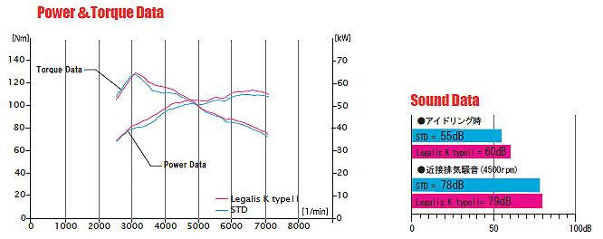 Stock: 55.3kw (75.2ps) / 6310rpm -> Fujitsubo: 56.9kw (77.4ps) / 6570rpm