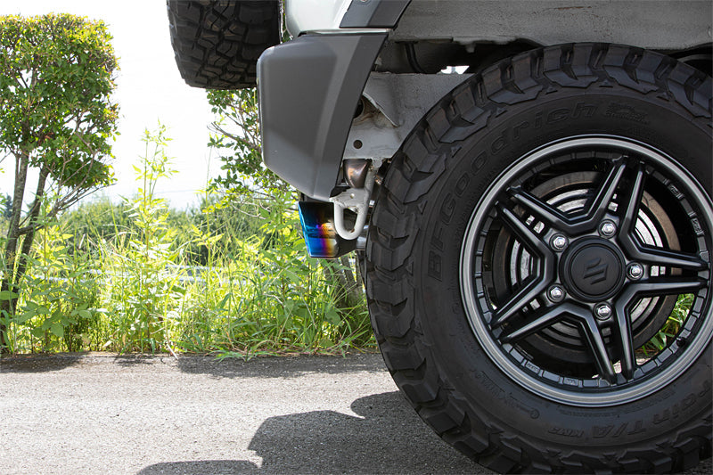 | Product Description | The tail is a circle type with a single on one side. It is a dress-up specification with a titanium color coating. The tail position is placed inside the genuine muffler, enabling simultaneous installation with the Jimny JB64 exclusive "JAOS Mudguard III". The body is made of high quality full stainless steel and is engraved with the BATTLEZ logo that enhances the sports mind. You can enjoy a nice sound with a restrained effect like a sports muffler and a light bubbling. With a certification plate issued by a certification body that has cleared the new noise regulations, you can use it with confidence without worrying about vehicle inspections. Product details: Centerpiece A, Centerpiece B, Rearpiece Specifications: Centerpiece: Stainless steel, Ø45 Rear piece: Stainless steel, Ø50 Tail: Circle type, Ø101 BATTLEZ logo engraved, Titanium color specification Proximity exhaust noise 76dB Acceleration running noise 77dB With 2010 noise regulation compliant plate Performance etc. confirmed Display content: JQR20193103 |