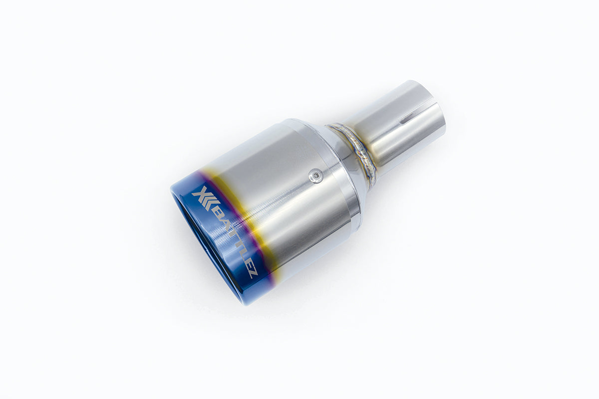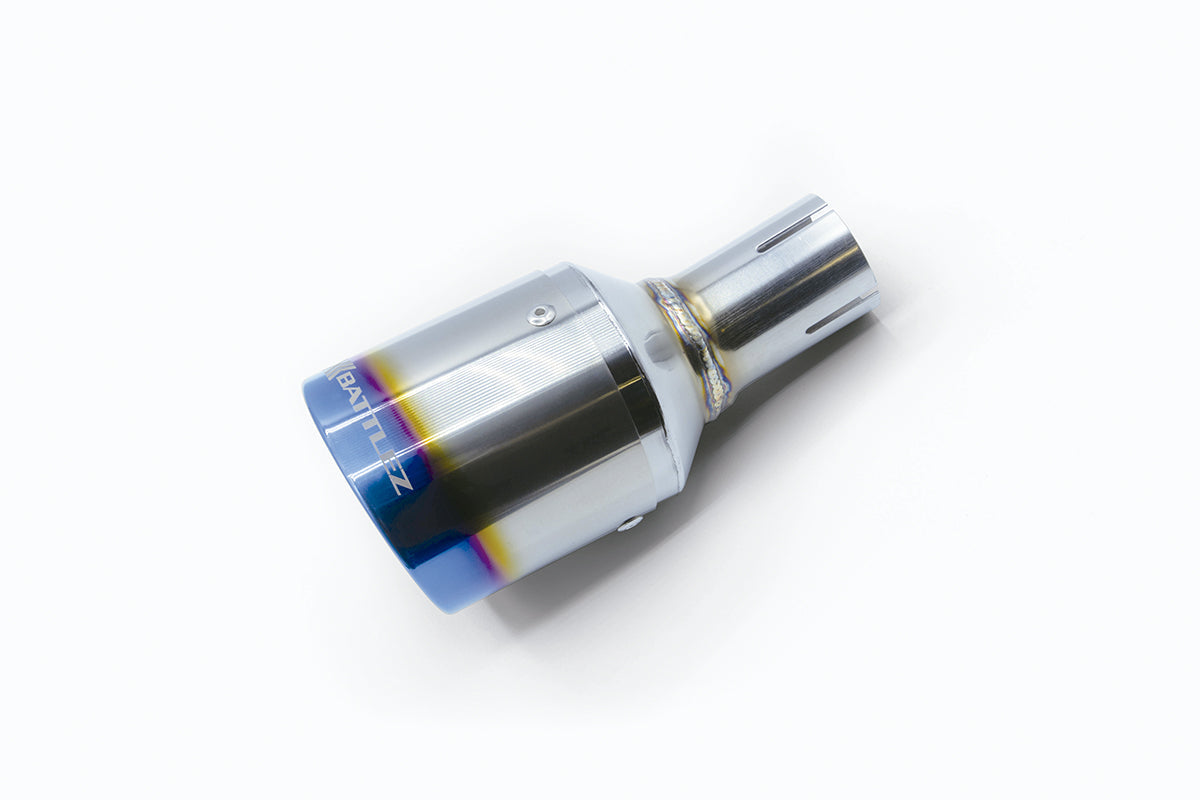 | Product Description | "BATTLEZ muffler cutter Ti" which adopted the titanium tail (Φ90) which has been adopted in the BATTLEZ muffler Ti series. It is a dress-up part that can be easily attached using a dedicated fixed band at the tip of the muffler while maintaining the performance, sound quality and volume of the genuine muffler. It comes with an illustrated instruction manual that also assumes DIY installation work. Also, you don't have to worry about car inspections. Product details: Muffler cutter, fixed band Specifications: Muffler cutter body: Stainless steel Tail: Titanium, Φ90, BATTLEZ blast logo |