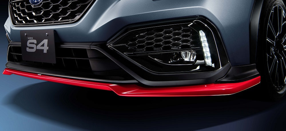 Product Description | The front under spoiler attached to the bottom of the blacked out front bumper tightens the underside of the body of the new WRX S4. The cross-sectional shape of the central part is optimized for the new WRX S4, the wind flowing under the floor is rectified, and a balanced lift reduction is achieved. Cherry red paint |