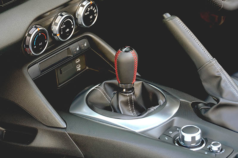 Product Description | Its height can be adjusted to suit your build and preferred stroke. It has an AutoExe logo plate on the top. The stitching is available in three colors: red, black, and light gray.■Part Number: NDA4 V9 050■Shape: Stick Shape ■Stitch Color: Red ■Material: Nappa Leather ■Model: Manual transmission M10×1.25 M10×1.25 ■Diameter: 42mm ■Full length: 73-91mm adjustable ■Weight: 190g ■Code: D |