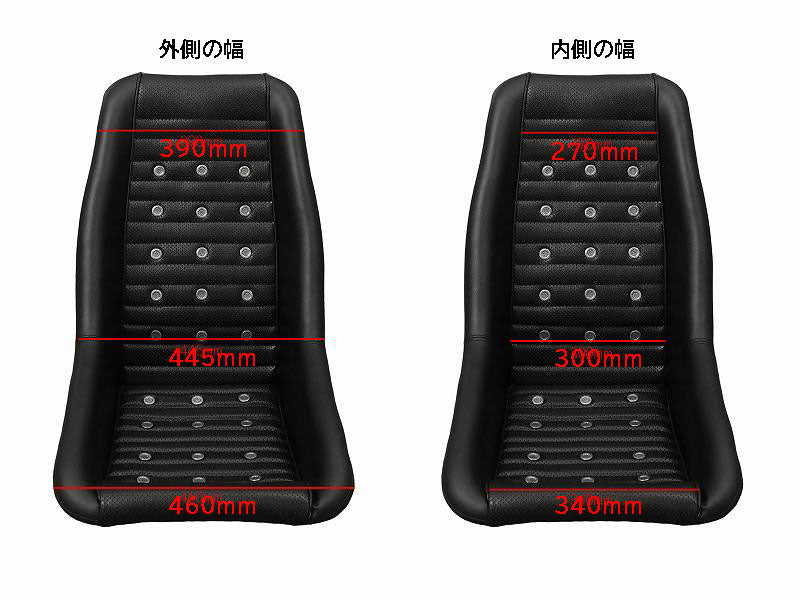 Product Description | Overall width is the same as the conventional product, approximately 350mm. By making the sides thinner, the hip width is expanded to approximately 270 mm. In addition, the urethane seat is also thin, so the eye position is approximately 70 to 80 mm lower than before. Bottom stop pitch (approx. mm): Horizontal 260/Vertical 315 Bolt: M8 |