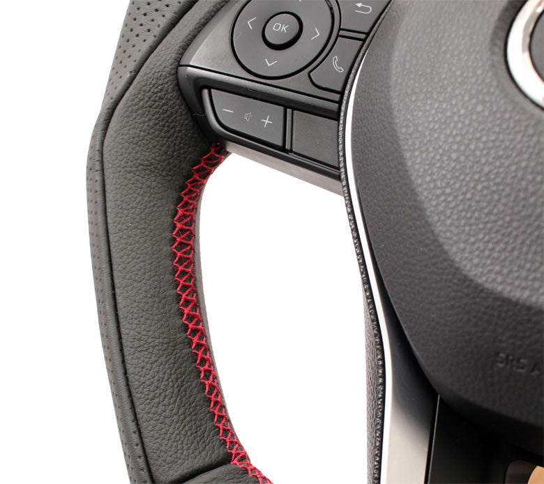 | Remarks | ・Sporty gun grip & D-shape design ・Uses genuine New Zealand cowhide that feels good to the touch ・Nappa leather is used for the Japan red collar ・Punched leather with excellent breathability is used for the gun grip and the lower side of the D-shape・Stitching is red color Euro stitch ・Genuine airbag, horn unit, switches, etc. are used ・Steering size is W380mm x H370mm ・Confirmed to have the same strength as the genuine product in the load test and torque capacity test conducted by an inspection agency ・Our steering wheel Although this product is designed specifically for the vehicle, the steering wheel may tilt in the neutral position due to individual differences between vehicles and steering wheels. In that case, it can be corrected by adjusting the vehicle alignment. Please note that costs associated with adjustments must be borne by the customer separately. |