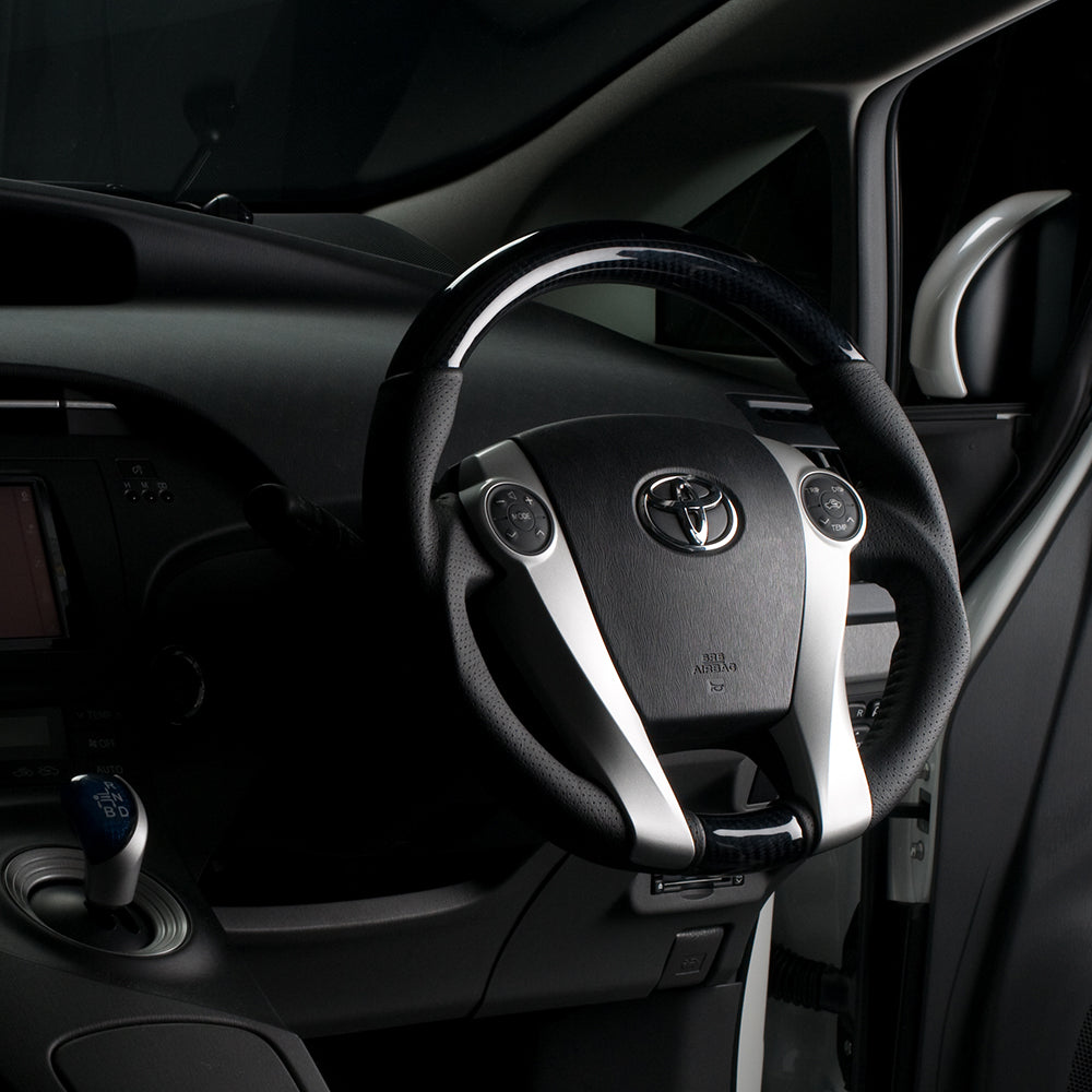 REAL ORIGINAL SERIES OVAL SHAPE BLACK CARBON BLACK STITCH STEERING WHEEL FOR TOYOTA PRIUS PHV 30 30-2-BKC