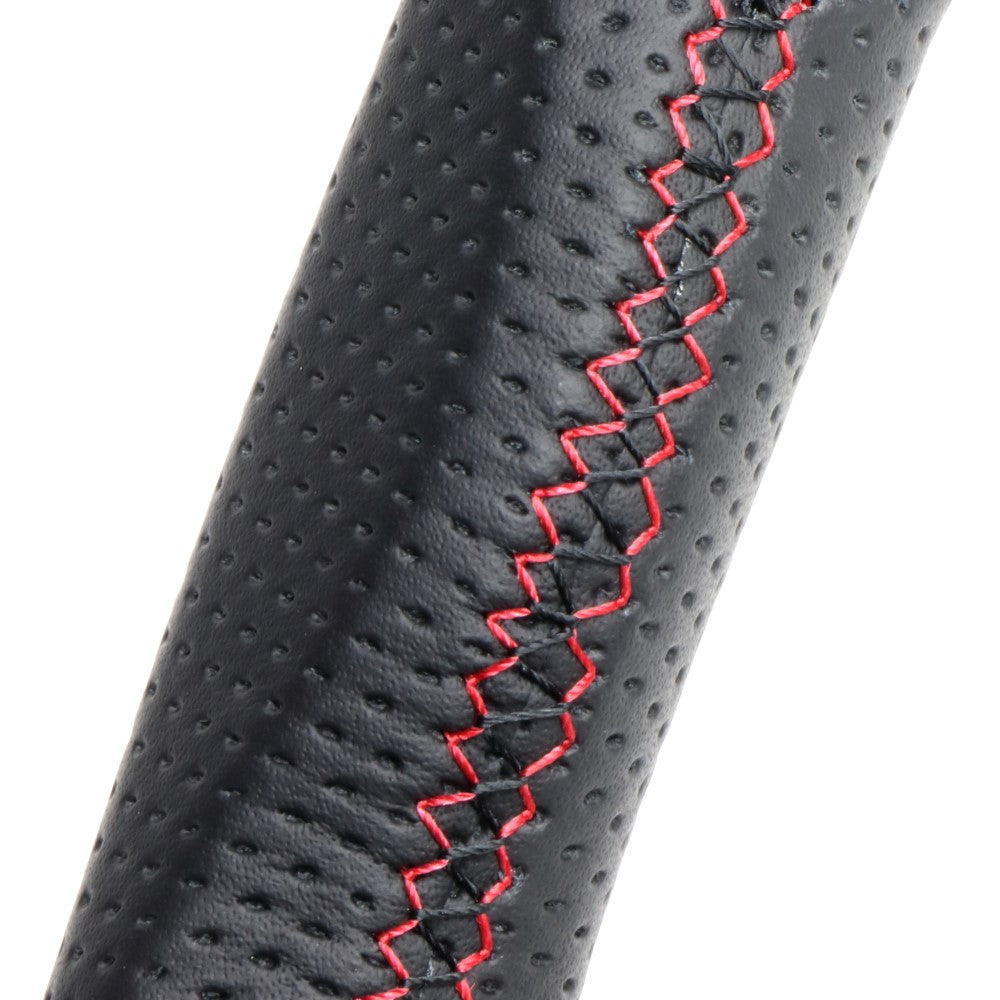 ORIGINAL SERIES EMBLEM TYPE D SHAPE ALL LEATHER RED X BLACK EURO STITCH STEERING WHEEL