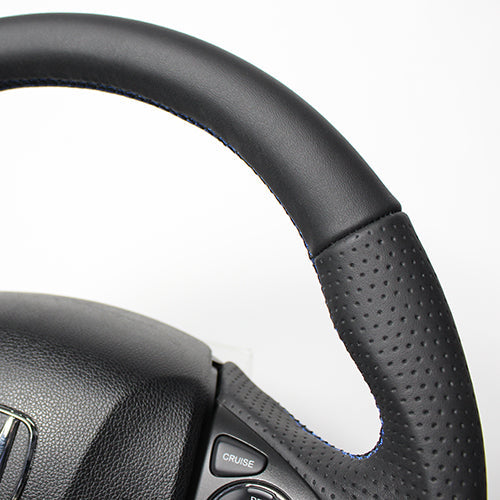 REAL ORIGINAL SERIES SOFT D SHAPE ALL LEATHER BLUE X BLACK EURO STITCH STEERING WHEEL FOR HONDA FIT GP5 6 GK3~6 HNA-LPB-BL