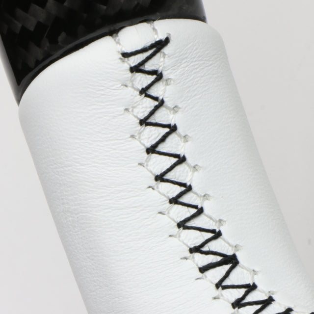 LEXUS SERIES D SHAPE BLACK CARBON & WHITE LEATHER WHITE X BLACK EURO STITCH STEERING WHEEL