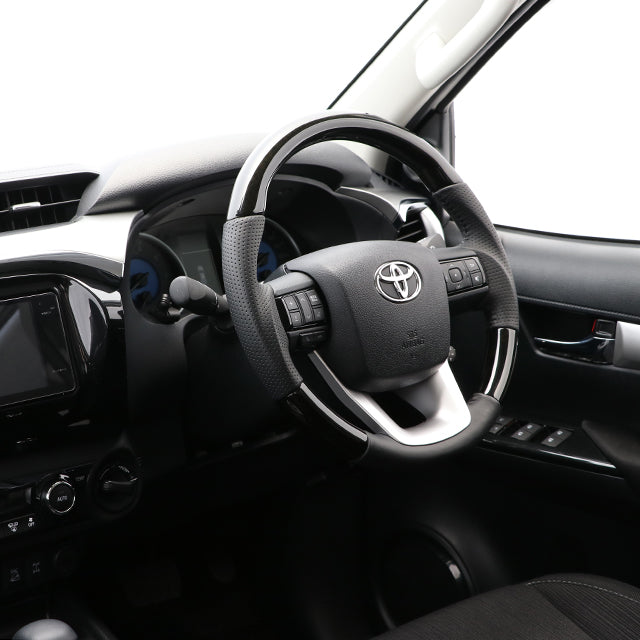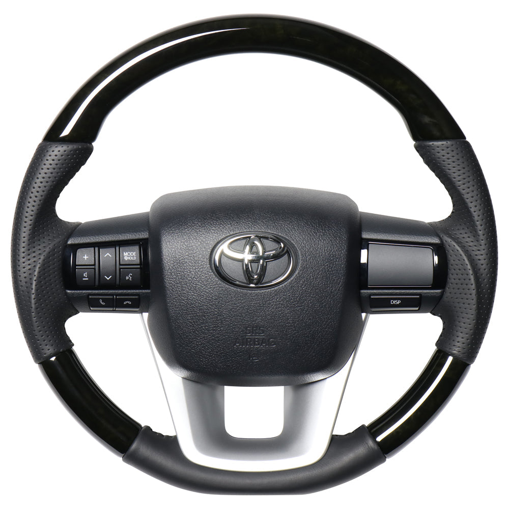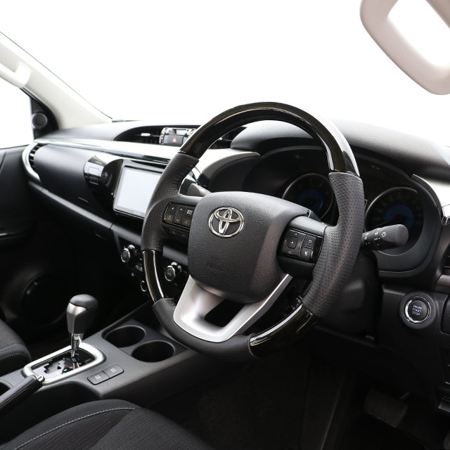 REAL ORIGINAL SERIES SOFT D SHAPE BLACK WOOD BLACK STITCH STEERING WHEEL FOR TOYOTA HILUX GUN125 N125-BKW-BK