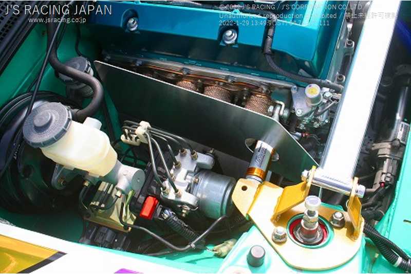 | Product Description | Material: Aluminum S2000 Engine torque damper dedicated heat shield Protects the ABS unit, clutch master, and brake master from the high heat of the EX manifold. When installing the engine torque damper with a genuine inclined heat plate, it was necessary to drill holes, but if you use the J'S RACING engine torque damper dedicated heat shield plate, you can install it without processing. If you have an engine torque damper or an engine torque damper tower bar, please use it. |