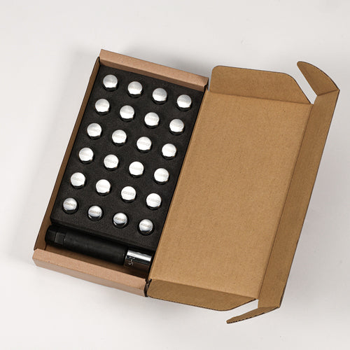 | Product Description | 17HEX nut x 20, lock nut x 4, L42 key adapter 17HEX (24φ) x 1, L90 long adapter 17-19/21HEX (24φ) x 1 Color: Chrome plating Size/material: M12x1.5, M12x1.25/SWCH10R Total length/weight: 31mm/48g (nut) |