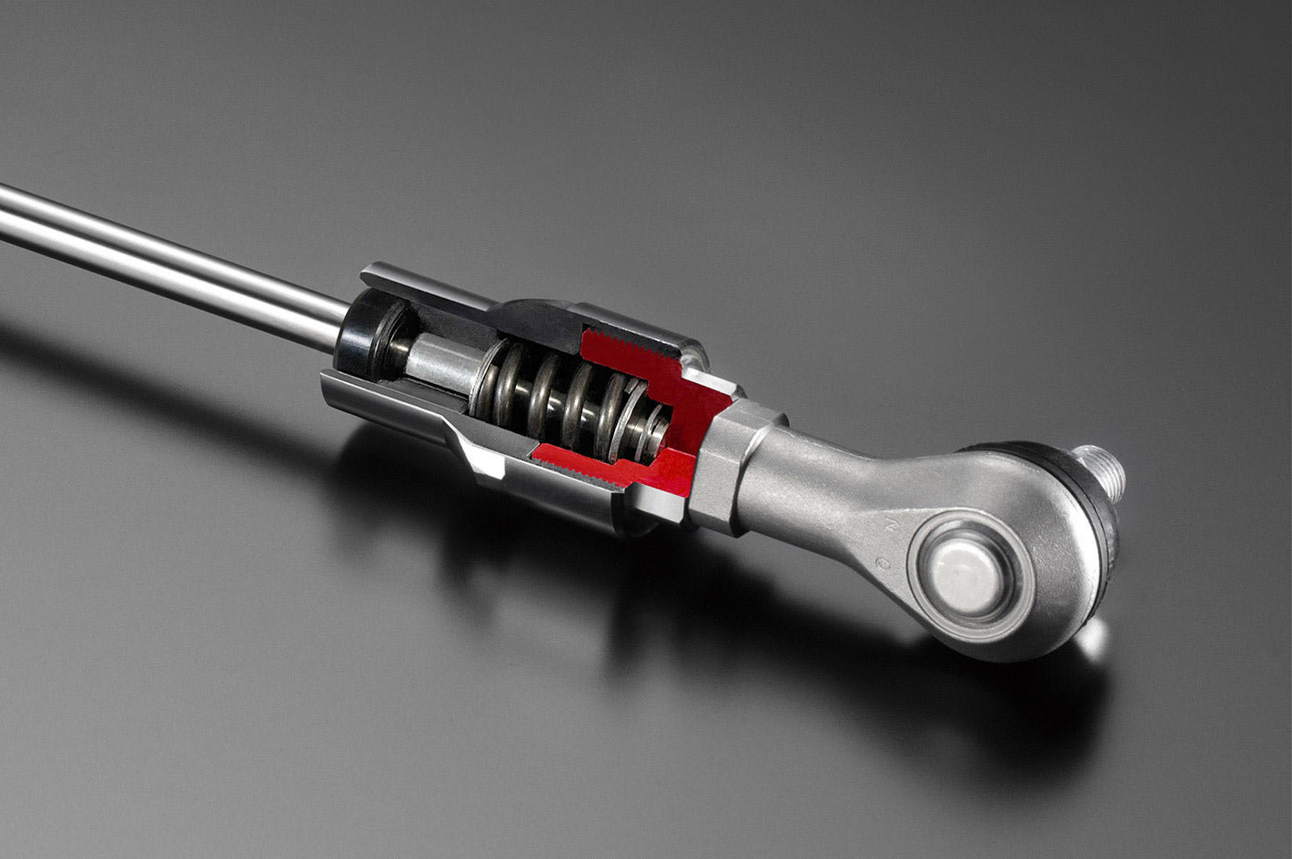 STI's original sports parts installed between the car body and the cross member correct the bending of the chassis while driving by applying appropriate tension, achieving both agile initial steering and a supple ride. By improving the ground contact of the four wheels, driving stability during cornering is increased, and a quick and straightforward steering feeling is realized.