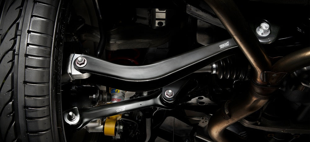| Description | The rubber bushes on both sides of the front link (toe control link) and inside of the rear link (lower lateral link) of the rear suspension have been changed to pillow ball bushes, and to hard bushes for the outside. The result is smoother operation of the rear suspension, with a reduction in the delayed response of the rear wheels, increased rigidity of the camber, and improved traction. |