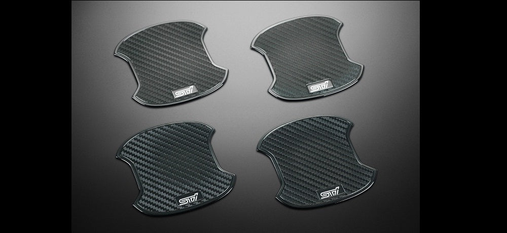 | Product Description | This is a carbon-effect door-handle protector which protects the car from scratches and fingerprints when opening/closing doors. Designed for a grip-type door handle, this not only serves as scratch prevention, but also adds a sporty touch to the door handle surroundings. It can be mounted along the dented form of the door and is pressure-bonded with powerful double-sided tape.* Chemical-based products such as waxes and coating agents or solvents including gasoline and thinners can cause stains and deformation of the product. If the cover comes into contact with such chemicals or solvents, clean the product immediately. * Please note that the product may detach or loosen if the car is cleaned under high-pressure or steam washing.* A set of 4 pieces of the same size for 1 vehicle (4 doors)* Carbon-effect PVC* When fitting the protector to an IMPREZA/SUBARU XV, please note that part numbers for current models (GK/GT) and former models (GP/GJ) are different. |