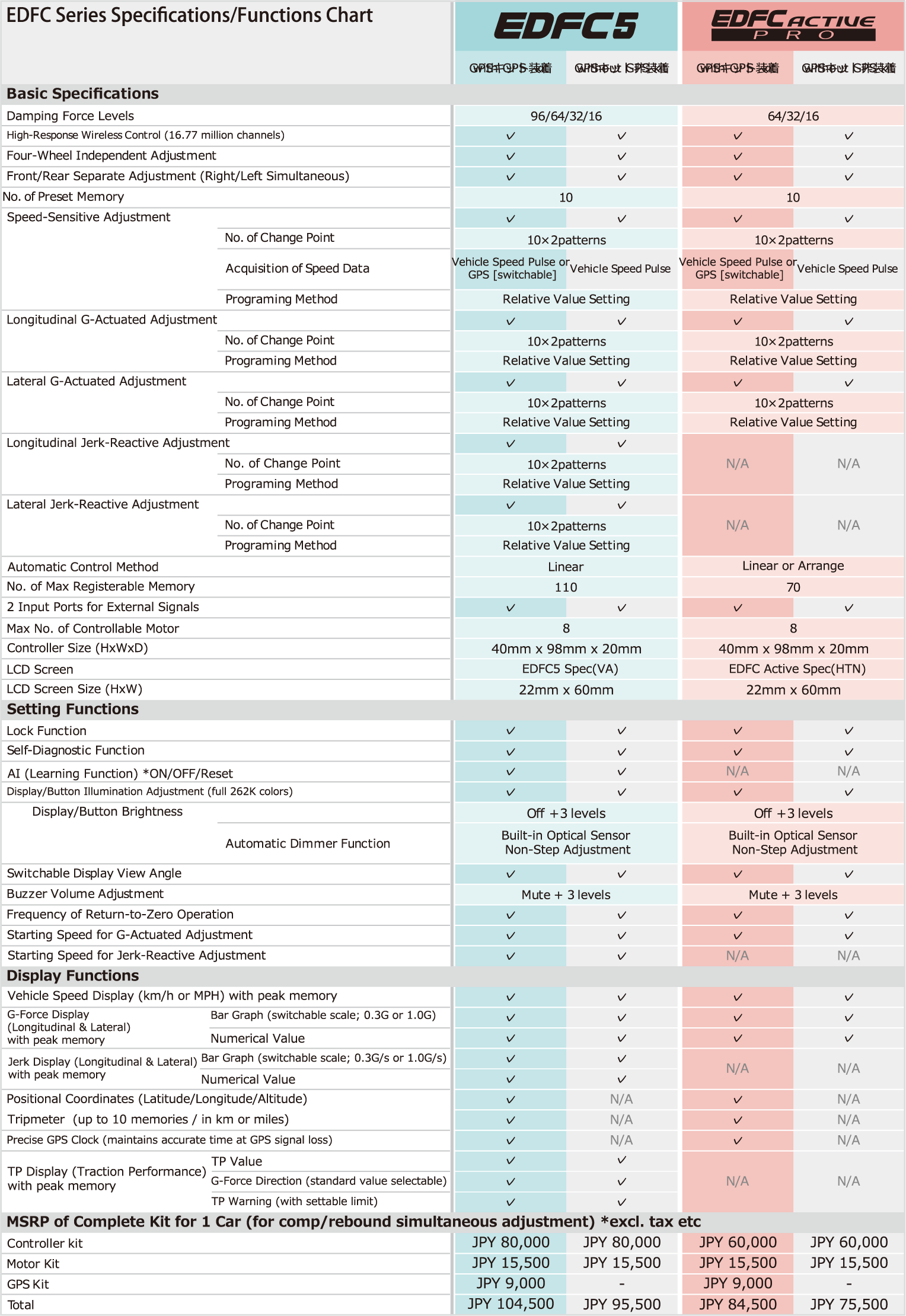 | Product Description | EDFC5 utilizes jerk-reactive adjustment feature, which is developed as a part of industry-academia collaboration with Prof. Dai Watanabe of Shibaura Institute of Technology, successfully combining both sharp handling and comfortable ride, to automatically provide most desirable driving behavior for all drivers. AI (learning function) helps to realize suitable driving feel, without sense of discomfort, for all sorts of situations. In addition, EDFC5 employs new approach to control motors to reduce operating sound, to maintain quietness like cars' original parts/components. Controller screen uses VA panel, as opposed to HTN panel that previous items use, for more beautiful and easy-to-read display. |
