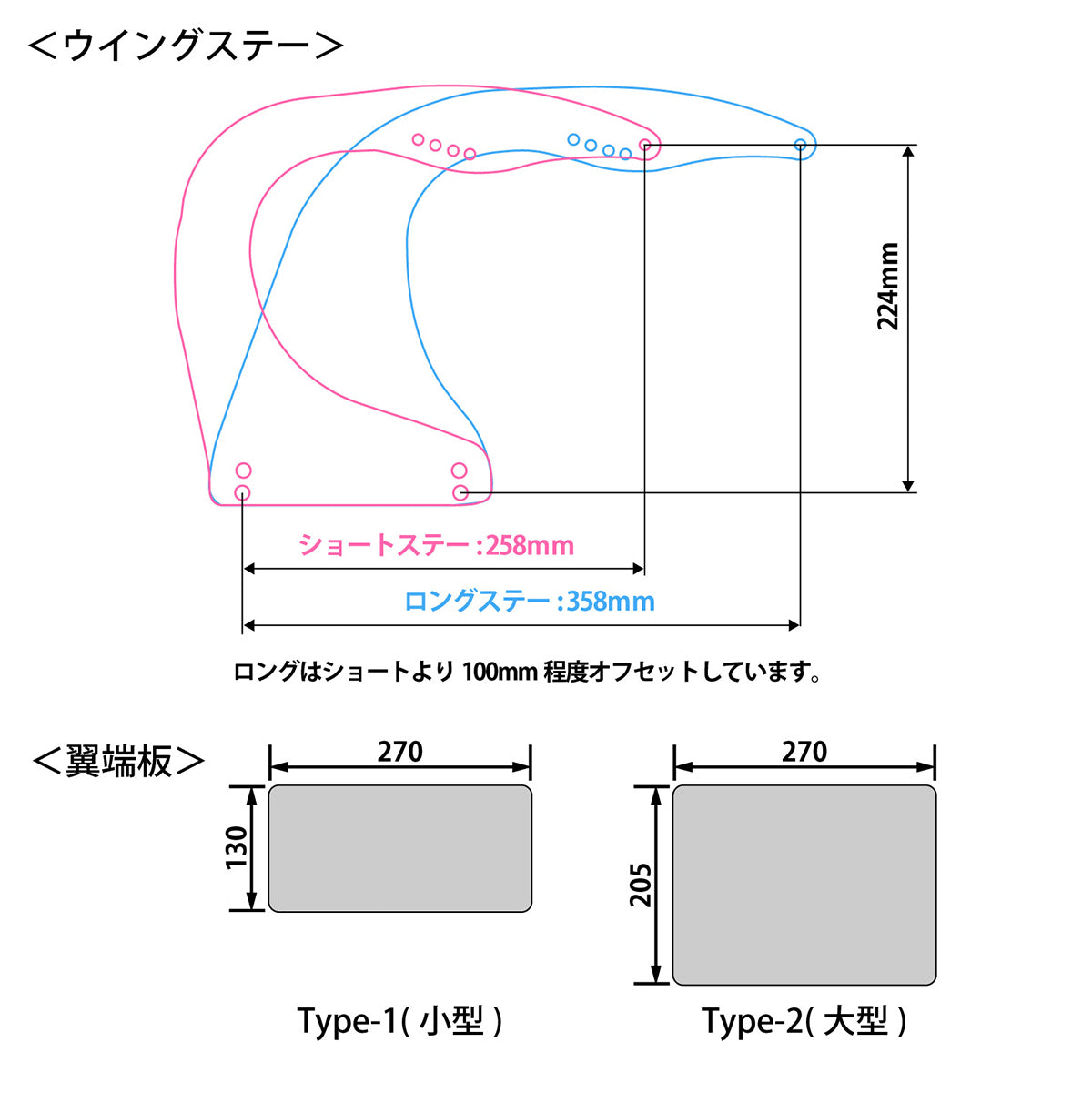 GT WING 014 SHORT SWAN NECK STAY 1400MM TYPE 1 TWILL CARBON